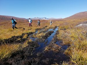 Вчера я сильно стёрла ноги сапогами, поэтому идти было неприятно. Но терпимо. До обеда шли около трёх часов. Сначала поднимались в горку, затем шли по ровному, но очень болотистому пространству. Хотя о чём это я. Болота — это наше второе имя.