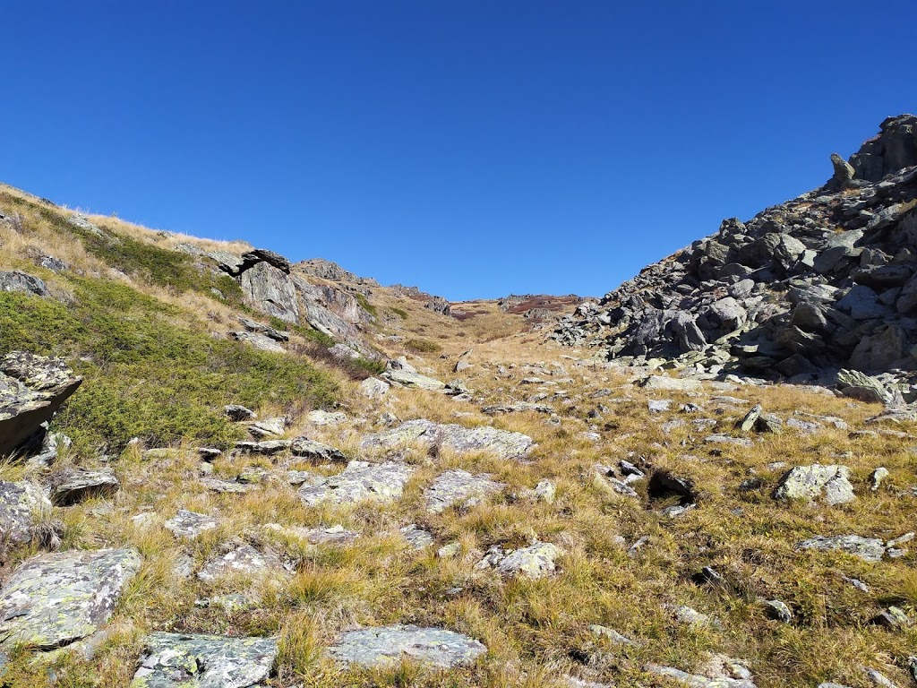 Я постигла дзен: мне больше не хотелось бежать впереди всех, поэтому я со спокойной совестью шла с Олей Ф. самая последняя. Тропка неторопливо уходила вверх, мы шли, полноценно наслаждаясь моментом, а горы по мере подъёма становились всё более многослойными.