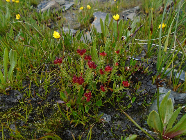 Это было гораздо приятнее, но болота всё равно заколебали. Часа за 2 мы дошли до озера, всё время избегая бродивших неподалёку диких яков. Озеро находится в зоне альпийских лугов, и сейчас тут весна: всё цветёт и пахнет, как у нас в апреле-мае. Цветов очень много, и большинство из них очень необычные и инопланетные.