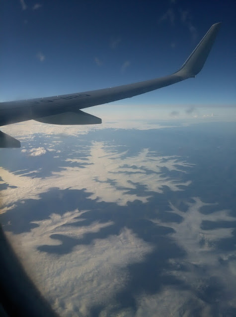 В общем, в половине первого мы взлетели. Сидим в хвостовой части самолёта, но ряд наш, к счастью, не последний. Нам даже курицы хватило. Я сидела у окна, но смотреть там было нечего, ибо ночь.