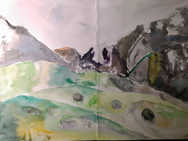 Таким неспешным шагом дошли до ручья примерно за час. Набрали воды, немного потупили и двинулись назад. Я благополучно сплавила свой рюкзак с тяжёлыми бутылками Семёну, поэтому идти назад мне было так же в удовольствие, как и туда. По приходу в лагерь я пошла на горку рисовать. Ветер норовил отобрать у меня мой творческий труд, а суслики составили мне прекрасную компанию.