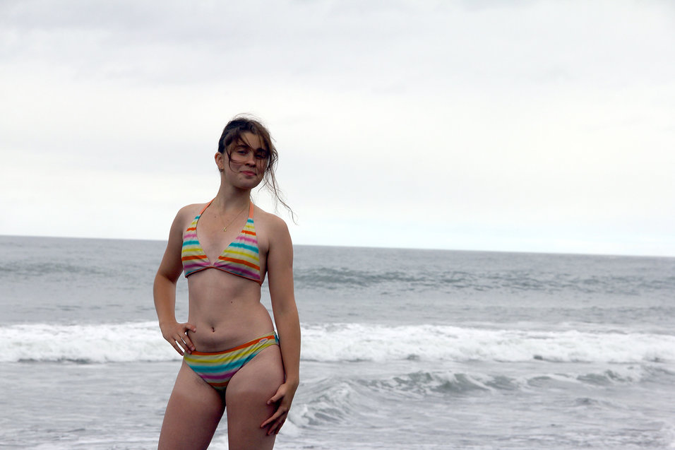 По приезду на место мы поставили палатки и натянули тент. Палатка у нас ПИКовская. Она трёхместная и довольно просторная, но оба тамбура совершенно идиотские. Мы еле-еле в них влазим со своим барахлом. Тент натягивали довольно оригинально: поскольку деревьев поблизости нет от слова совсем, тент натягивали при помощи наших палок. Своеобразненько. Потом мы почему-то заключили договоры с турклубом на оказание услуги. Будучи уже в походе. Очень странно. Потом дежурные вроде бы стали варить обед, а мы с т. Аней, т. Машей и Яхой пошли купаться. Ну, то есть девочки пошли купаться, а надутый Яха нас фотал. Вода в океане холоднющая!!! И приливная волна очень высокая. Мы сначала пофотались в прыжке, потом, вопя, забежали в воду, а потом красиво бегали по берегу.