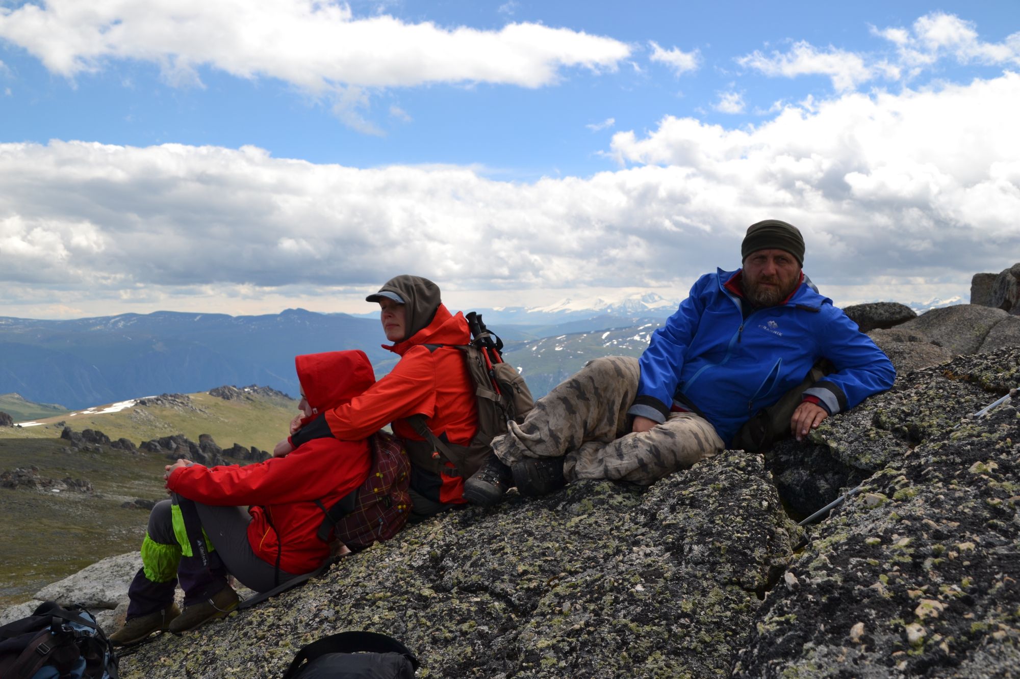 Итак, отважных искателей приключений оказалось ровным счётом семеро. Из интересного: на ближайшей вершине мы обнаружили турик, древнюю колченогую треногу неизвестного назначения, грозную табличку «охраняется государством», а также записку приблизительно следующего содержания: в 2012 году на эту гору взошла группа-семья из четырёх человек. Вдохновившись, мы снабдили эту записку продолжением: в этом, то есть в 2022 году, на эту вершину взошла группа из семи человек (Новосибирск, Барнаул, Санкт-Петербург и Черноголовка). Об остальных девятерых, которые тоже ели шпроты неподалёку, мы решили не упоминать. Исключительно в целях экономии бумаги, да.