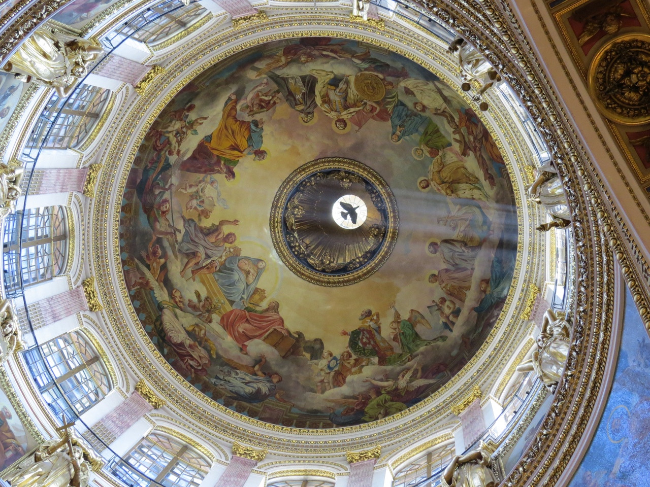 Узнала, что собор спасли от сноса в годы советской власти, устроив там антирелигиозный музей и установив маятник Фуко, который доказывал вращение Земли вокруг своей оси. А с колонады открывался обалденный вид.