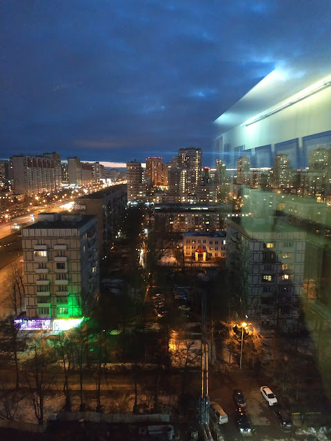 В столицу прибыли в 8:50 по местному времени. Москва встретила нас низким серым небом и мелким дождиком. Довольно уныло. Температура тут немного плюсовая, и поэтому снега осталось совсем мало. Никакого сравнения с новосибирскими сугробами.
