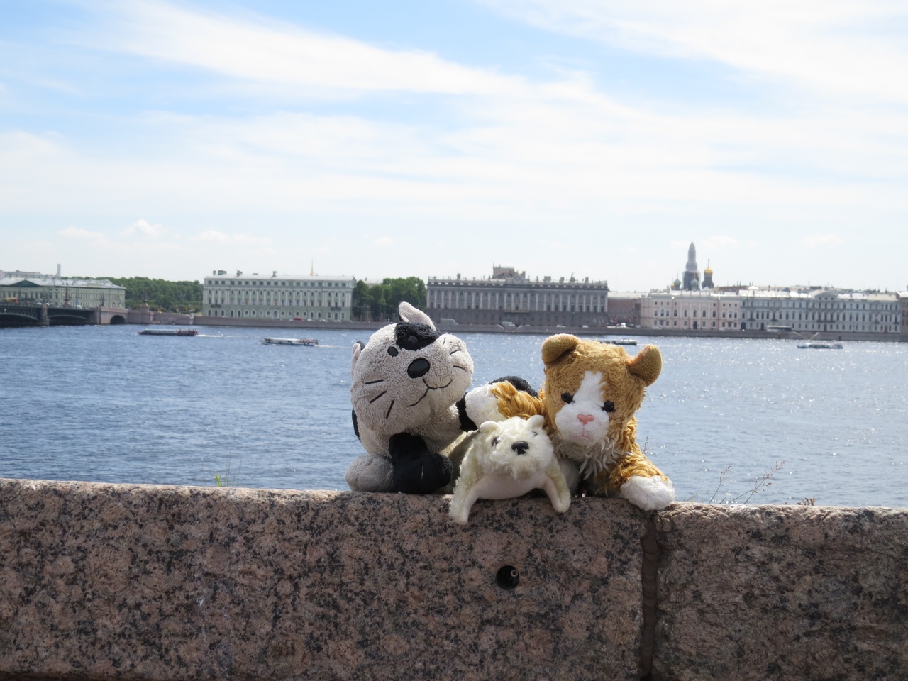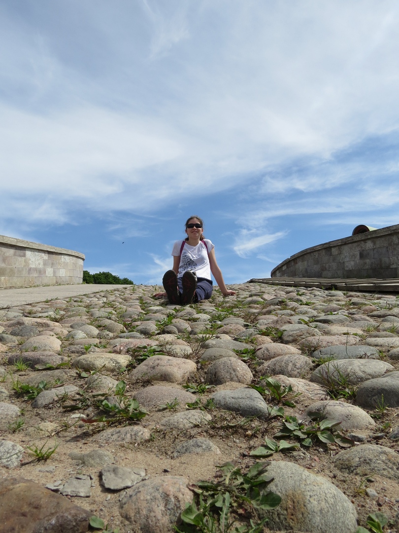 Каждый день в 12 часов в Петропавловской крепости стреляют из пушки, и Святославу очень хотелось присутствовать при этом событии. Наблюдать бабах пушки мы решили со стены крепости. На мой взгляд, самым прекрасным во всём этом мероприятии была панорама, открывающаяся нашему взгляду с высоты. Это безусловно была красотенюшка.