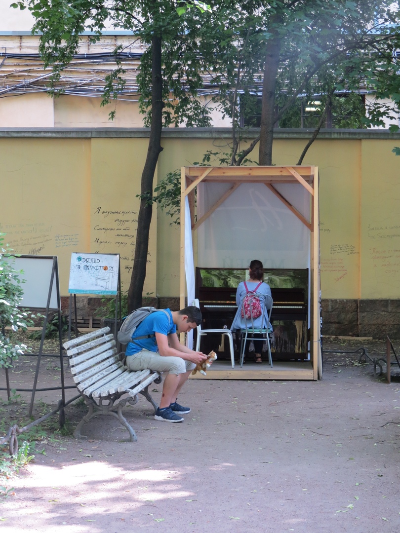 Сегодня я хранитель ключей. А дед и девицы уехали в Петергоф на конгресс. Утром я всё-таки сумела найти дом-музей Анны Ахматовой, парк и пианинку. Не могла не обрадоваться этому факту. Пианино было, кстати, в довольно приличном состоянии, вопреки тому, что живёт оно вообще-то на улице. Я радостно села музицировать. За процессом музицирования меня и застали Катя и Святослав.