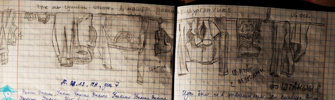 Очень успешно, что не может не радовать! Играли в контакт и ещё в какую-то сложную игру: человек загадывает слово и объясняет его только при помощи слов на букву П, а все остальные пытаются это слово отгадать, громко ржа при этом. После обеда-перекуса добрые хозяева опять пустили нас в свою ванну, где мы и отмокали. Я весь день рисовала скетчи, а с Яхой мы несли чушь.