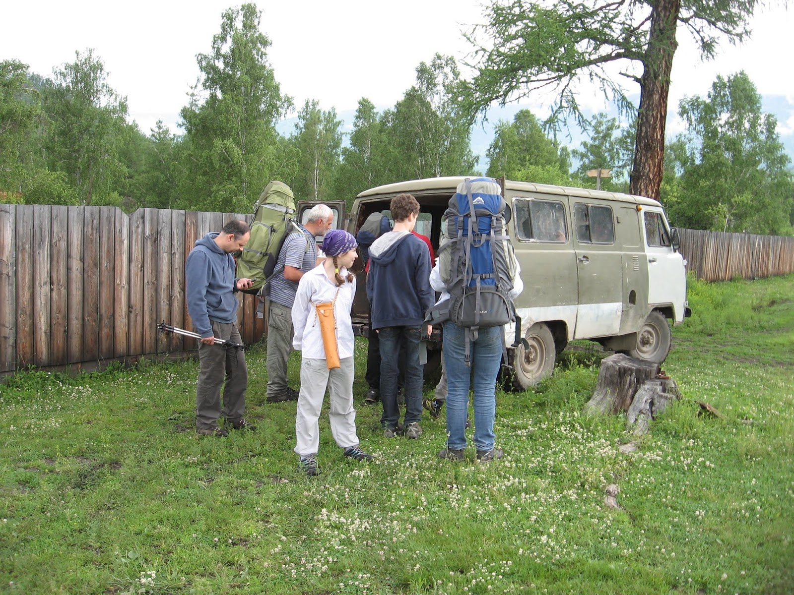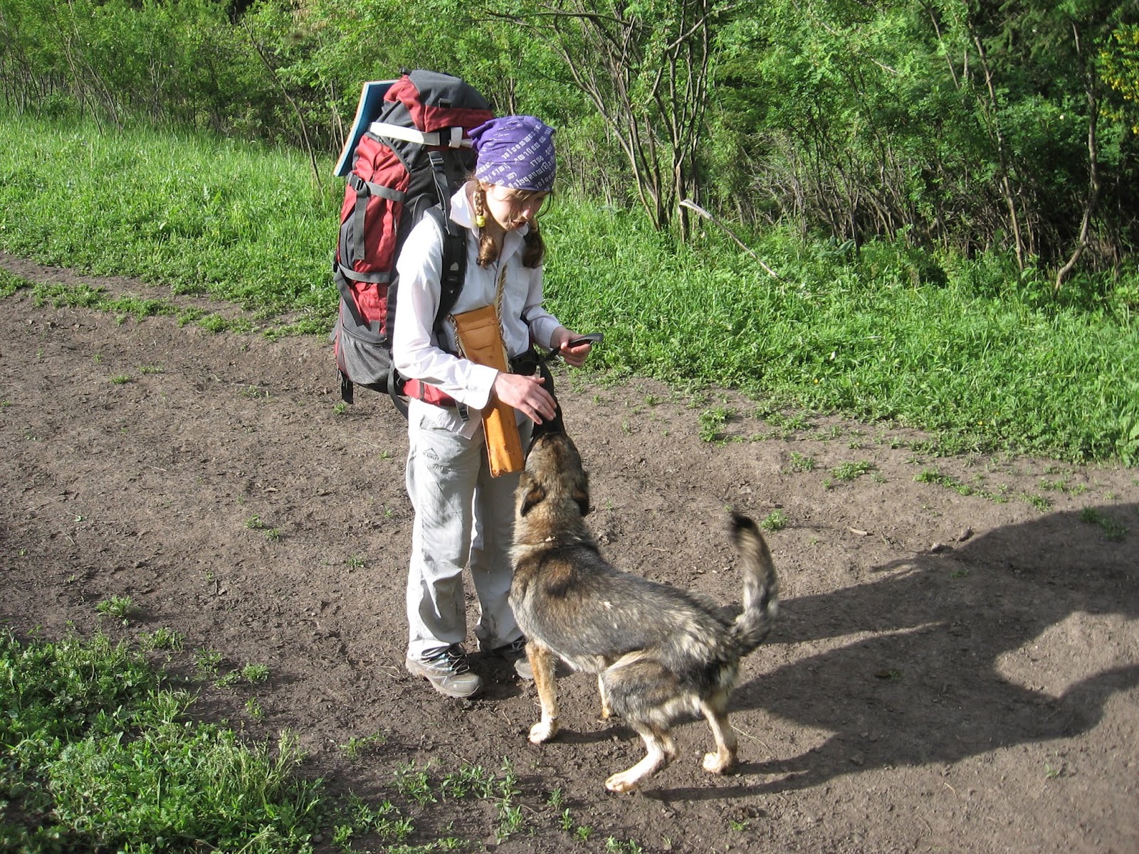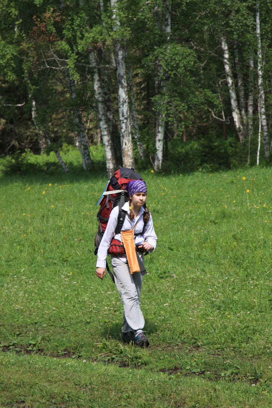 Но вот поля закончились. Я дошла туда, а там сидят Дима с Андреем (десятиклассник) и ждут т. Машу с Яхой, чтобы разгрузить Яху. Я тоже стала ждать. Мы дождались, переложили всю Яхину обувь Андрею в рюкзак, и Яха поскакал. Дальше я шла рядом с Яхой и т. Машей.