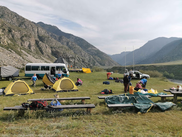 Затем ехали на буханках. Смена транспорта произошла у пограничников, где мы должны были получить пропуска на Укок. А вот фигушки. Доблестная почта России не успела доставить нам наши пропуска, и теперь они придут только в четверг-пятницу. А сегодня – напоминаю – ещё только вторник. Короче, облом по полной программе. По итогу мы сегодня едем по направлению к Софийскому леднику. Состав нашей буханки следующий: я, Яха, Паша, Святослав, Катя и Дима. Обедали в какой-то сомнительной кафешке. Однако все, к счастью, остались живы. До места назначения доехали только к семи вечера. По дороге много фотались.