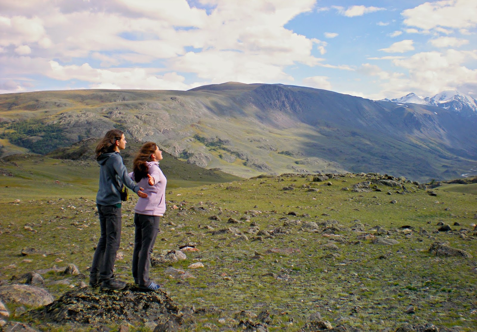 Затем ехали на буханках. Смена транспорта произошла у пограничников, где мы должны были получить пропуска на Укок. А вот фигушки. Доблестная почта России не успела доставить нам наши пропуска, и теперь они придут только в четверг-пятницу. А сегодня – напоминаю – ещё только вторник. Короче, облом по полной программе. По итогу мы сегодня едем по направлению к Софийскому леднику. Состав нашей буханки следующий: я, Яха, Паша, Святослав, Катя и Дима. Обедали в какой-то сомнительной кафешке. Однако все, к счастью, остались живы. До места назначения доехали только к семи вечера. По дороге много фотались.