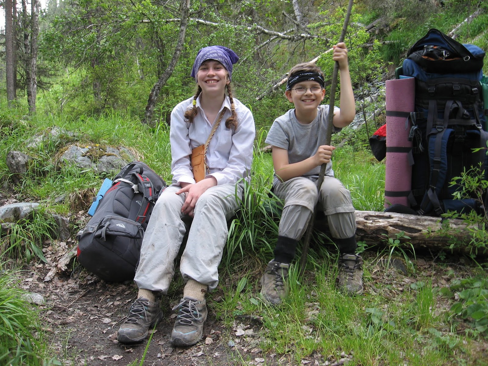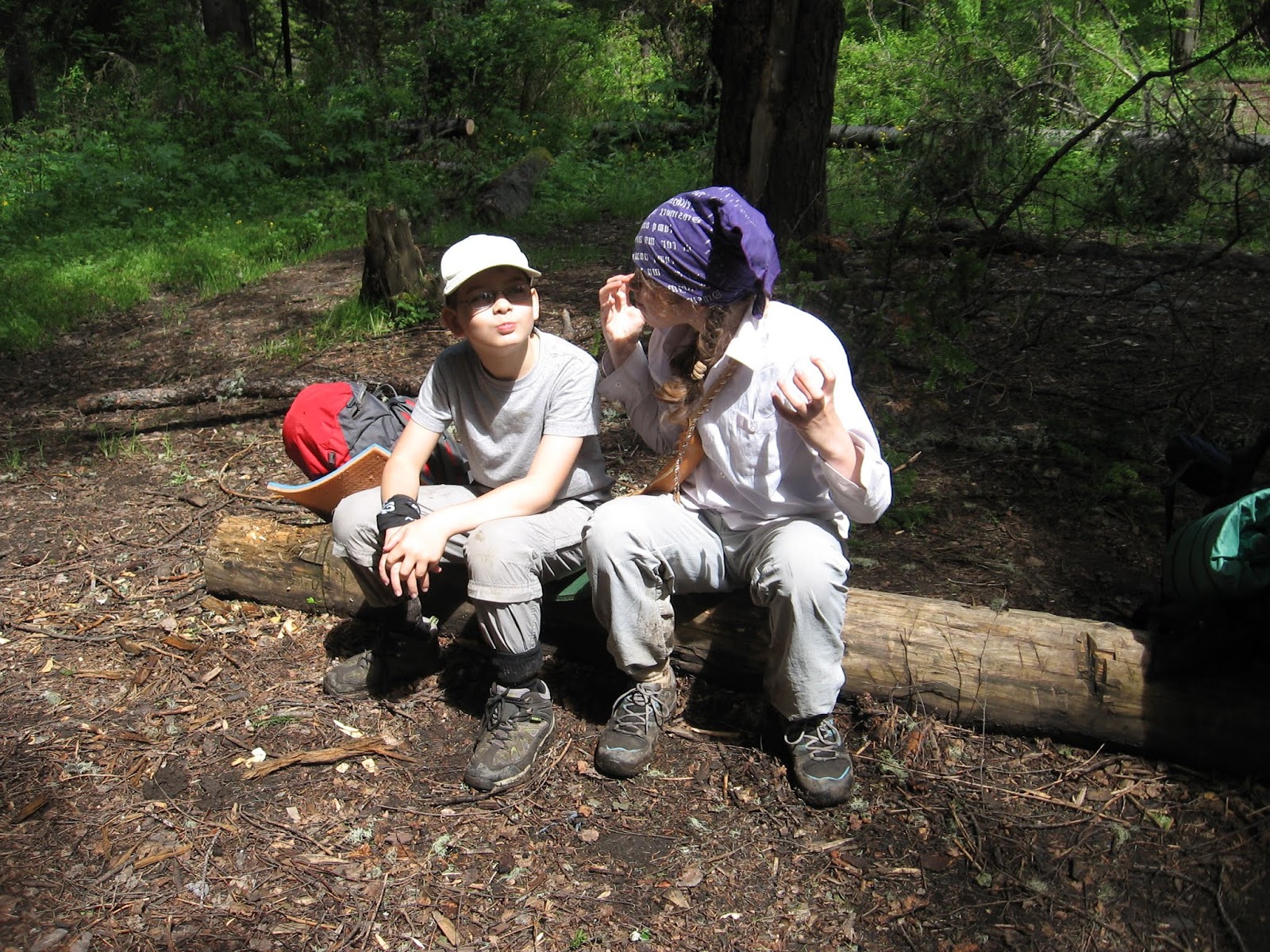 Сначала мы шли по лесу – до обеда. Обед у нас был рядом с очень бурным ручьём, поэтому мужчины построили мост из брёвен.