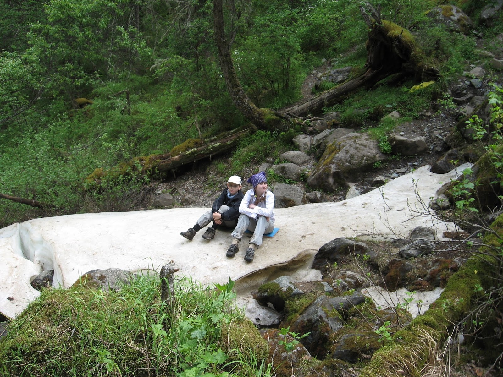 На завтрак у нас были рожки с сыром. Я вроде бы и успела проголодаться, но Дима опять положил мне дофига, и мне пришлось покормить лес. Собирались шабутно, потому что у Рустама не было рюкзака. Таким образом я отдала спальник Диме, упаковала свои вещи в половину рюкзака, а другая половина досталась Рустаму. И он нёс мой рюкзак. А я несла Яхин, так что Яха бежал налегке и поэтому скакал, как козлик. Вышли где-то в 10. Сегодня у нас не было такого крутого подъёма, как вчера: идём то вверх, то вниз. И ручьи есть почти на каждом привале.