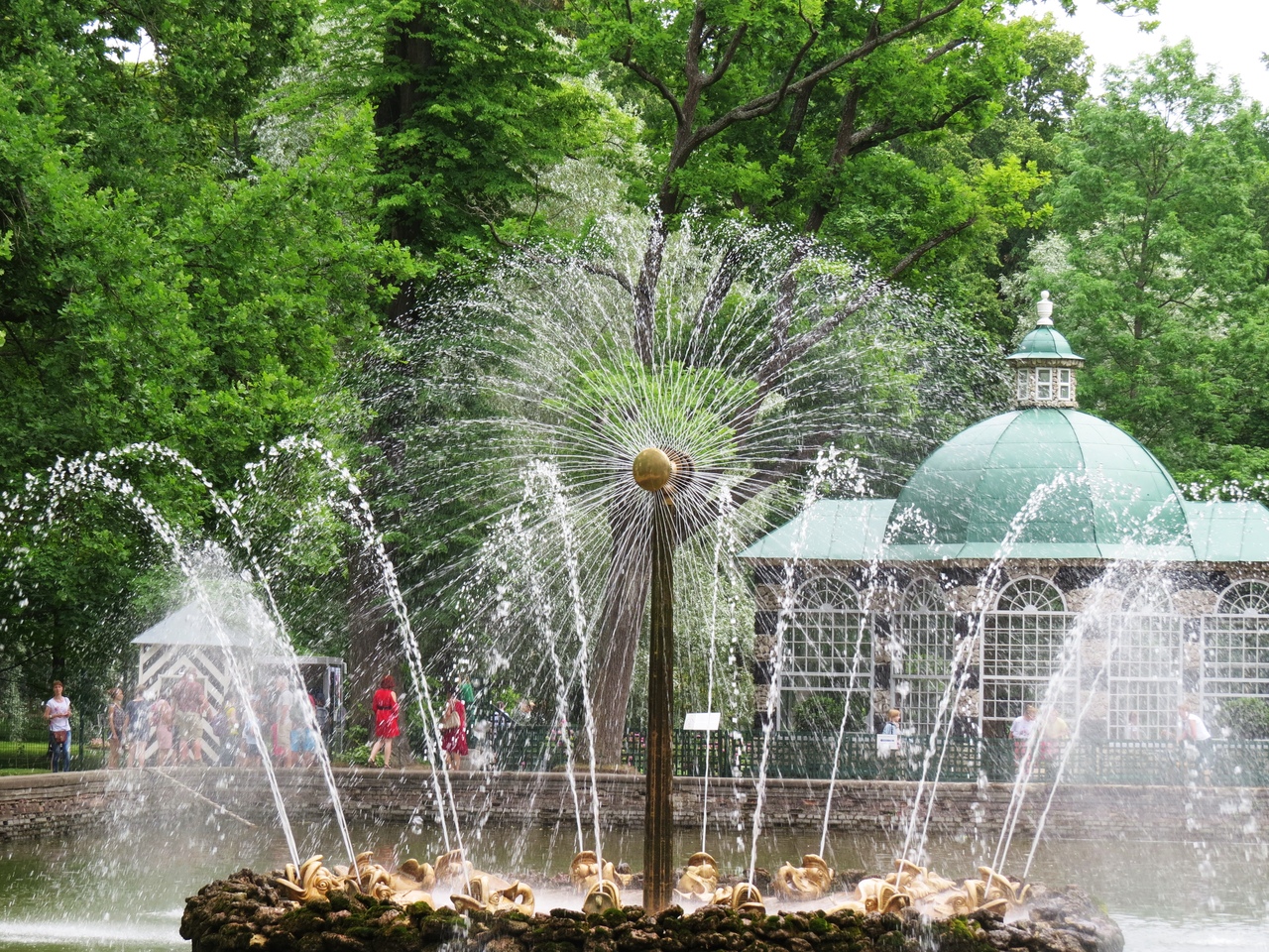 В парк я прошла бесплатно, поскольку я по-прежнему ребёнок до 16ти лет. Эта легенда очень успешно работает. В парке опять были толпы. Тут вообще бывает когда-нибудь, чтобы окружающие люди тебе в затылок не дышали?? Похоже, что всё-таки нет. Так вот, была большая толпа по поводу запуска фонтанов, коих там превеликое множество. Я не очень поняла, чего все так переполошились. Фонтаны ведь весь день работают.