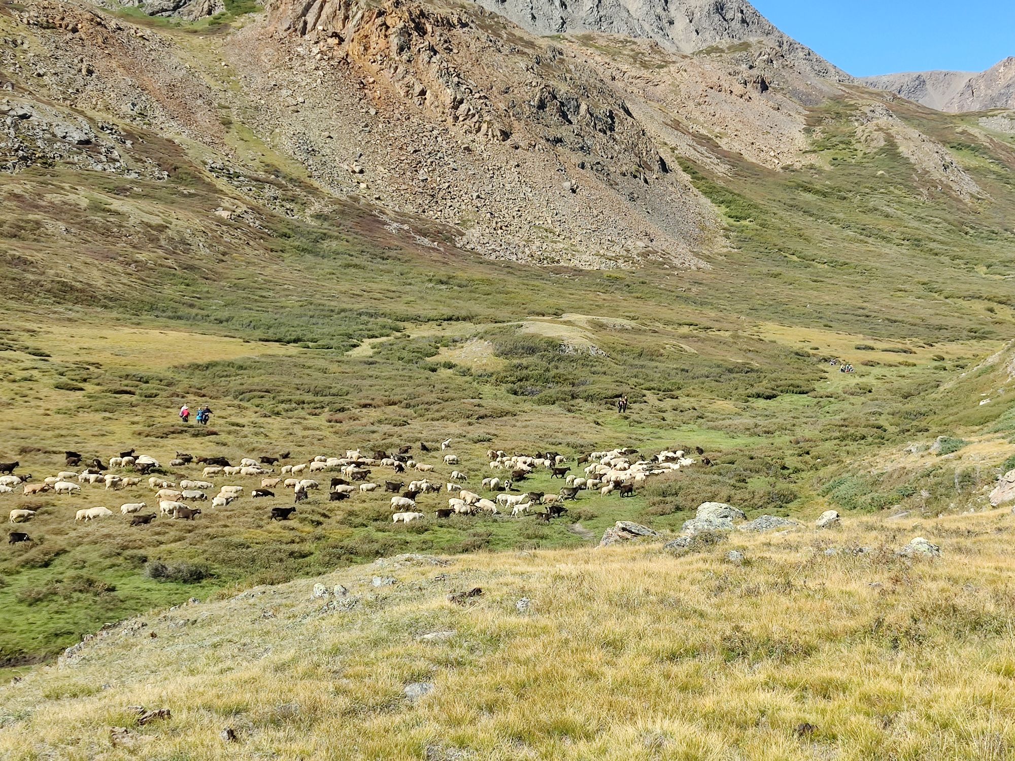 В 9 утра выдвинулись. Яркие, красивые, в модных шапках и панамках, в чистых ботинках и свежих фонариках, а главное — с отличным праздничным настроением, на направили наши стопы вверх по долине Джело, вплоть до одноимённого ледника. Стопы ещё не подозревали о том, какие подвиги их ожидают сегодня. Очень постепенно набирая высоту, мы наслаждались ярким солнышком и свежим ветром, вели светские беседы не только друг с другом, но и с разнообразным рогатым скотом, который здесь обитает в большом количестве и деловито осваивает все окружающие нас горные склоны. Коровы, козы и прочие бараны оказались очень общительными и охотно поддерживали разговор.