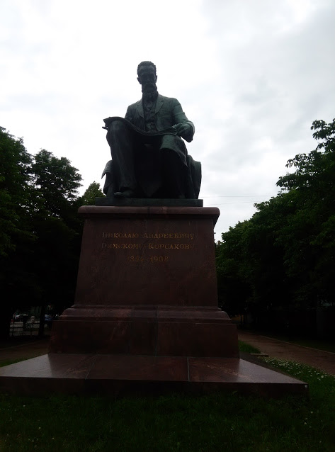 Потом были птички. МНОГО птичек. Разные птички. Потом обитатели степей, пустынь, тундры, тайги, тропических лесов, прибрежных скал и других возможных экосистем. Было представлено много витрин а-ля “в естественной среде обитания”. Занятно. В конце были мамонты, носороги, бегемоты, жирафы, слоны, лошади, верблюды, белые, чёрные и бурые мишки, большие дикие кошки, тапиры, музавьеды, косули, олени, маралы, лоси и много ещё кто. Всех не упомнишь, не перечислишь. Я пробыла в музее 3 часа и не успела всё посмотреть и про всё почитать. Под конец моя голова приняла абсолютно идеальную квадратную форму. Выйдя из музея, я нашла очень милый парк, в котором стоит колонна РУМЯНЦЕВА ПОБЕДАМЪ, и немного там отдохнула. После этого перешла на обратный берег Невы и направилась в сторону консерватории, надеясь, что её уже закончили реставрировать. Мне было обещано, что в Спб красивая конса. А вот фигушки. В смысле, может быть, она и красивая, но вся в лесах, так что непонятно. Зато я нашла памятники Глинке и Римскому-Корсакову, а также Мариинский театр и Мариинский театр-2.