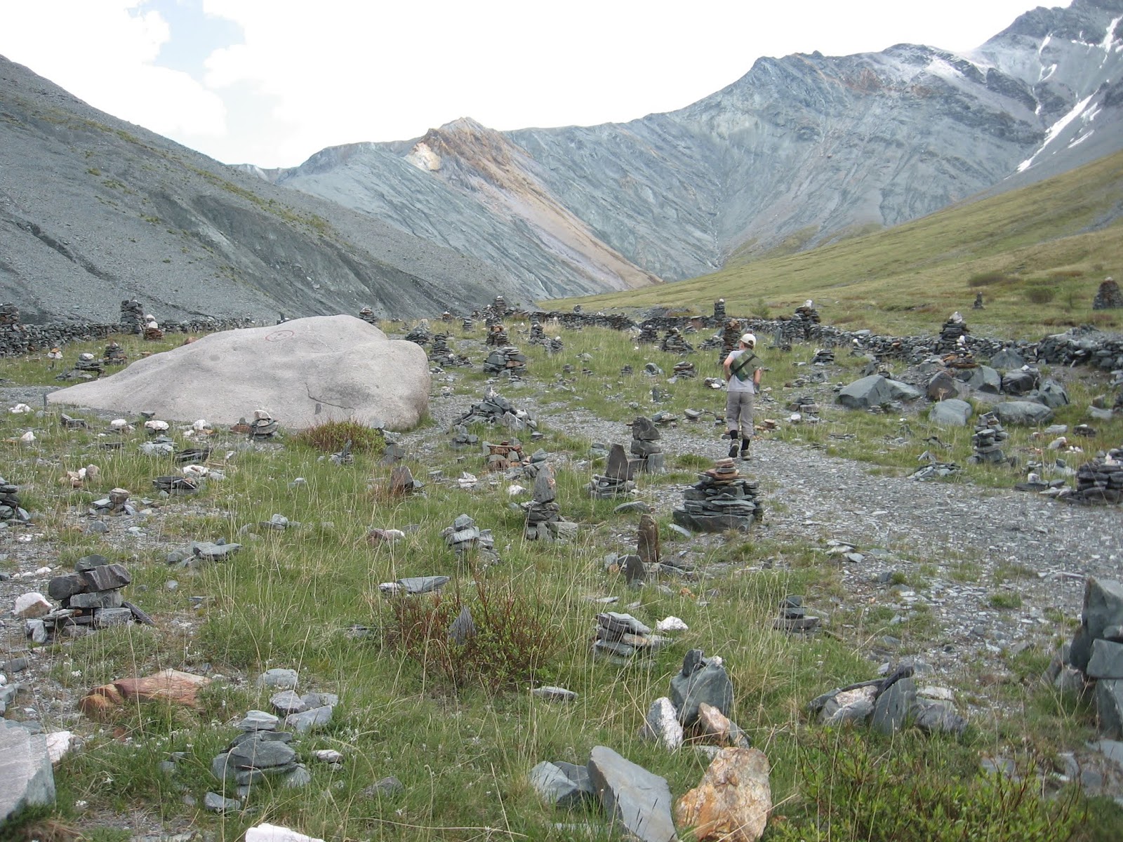 Яха быстро сдулся, и поэтому Дима дал ему конфеты. Доскакали до того места, где можно было разделиться: идти или по горам, или по долине реки. Но в итоге все встречаются в городище – небольшие и странные сооружения из камня, постоенные кем-то в честь Рериха.