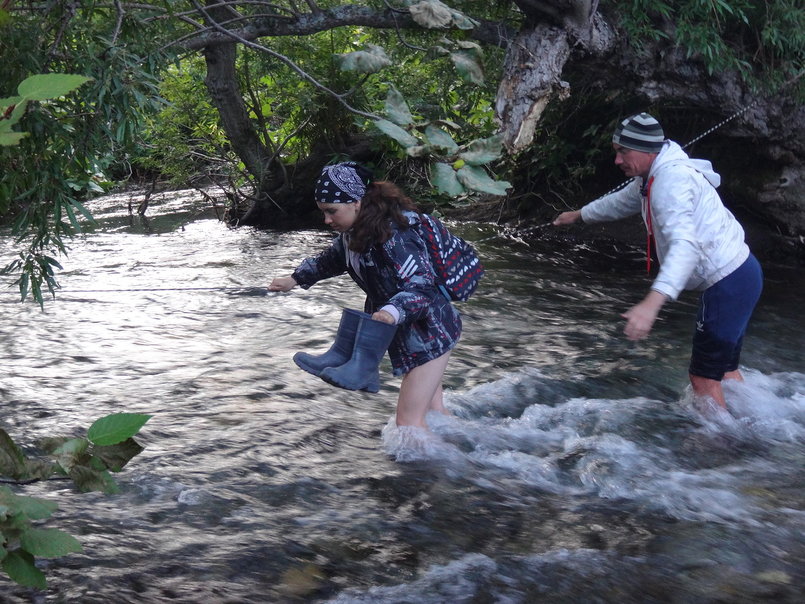 После обеда мы отправились в экспедицию на горячие источники. По дороге пришлось продираться через бурную растительность, переходить речку в недоброд и другую речку – в нормальный брод.