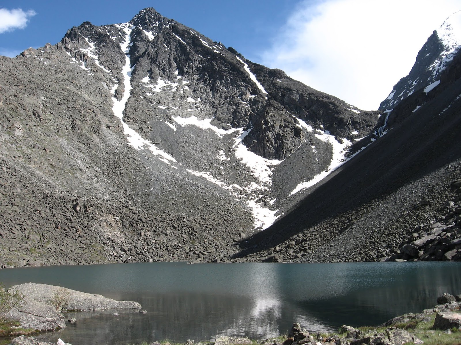 После долгих споров решили, что на озеро всё-таки идём, несмотря на время. Я решила, что буду ходить во все радиалки, чтобы точно ничего не пропустить. В лагерь пошли Яха, Наташа, Андрей и Рустам, а все остальные попёрли вверх. Сначала идти было жутко сложно: жара, камни, крутой подъём и пить хочется. Но позже, когда дошли до воды, идти стало легче.