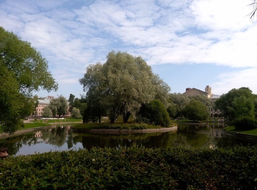 Сегодня у нас план-минимум — Исаакиевский собор. Но сначала его нужно найти! Т. Наташа выдала бабушке по телефону какие-то инструкции, которые, как оказалось, не сильно-то нам и помогли. Умудрились проехать нужную остановку. Зато, пока возвращались назад, погуляли в Юсуповском садике. Товарищ князь Юсупов был очень богатенький Буратино, поэтому этот просторный парк в его понимании был как раз-таки садиком.