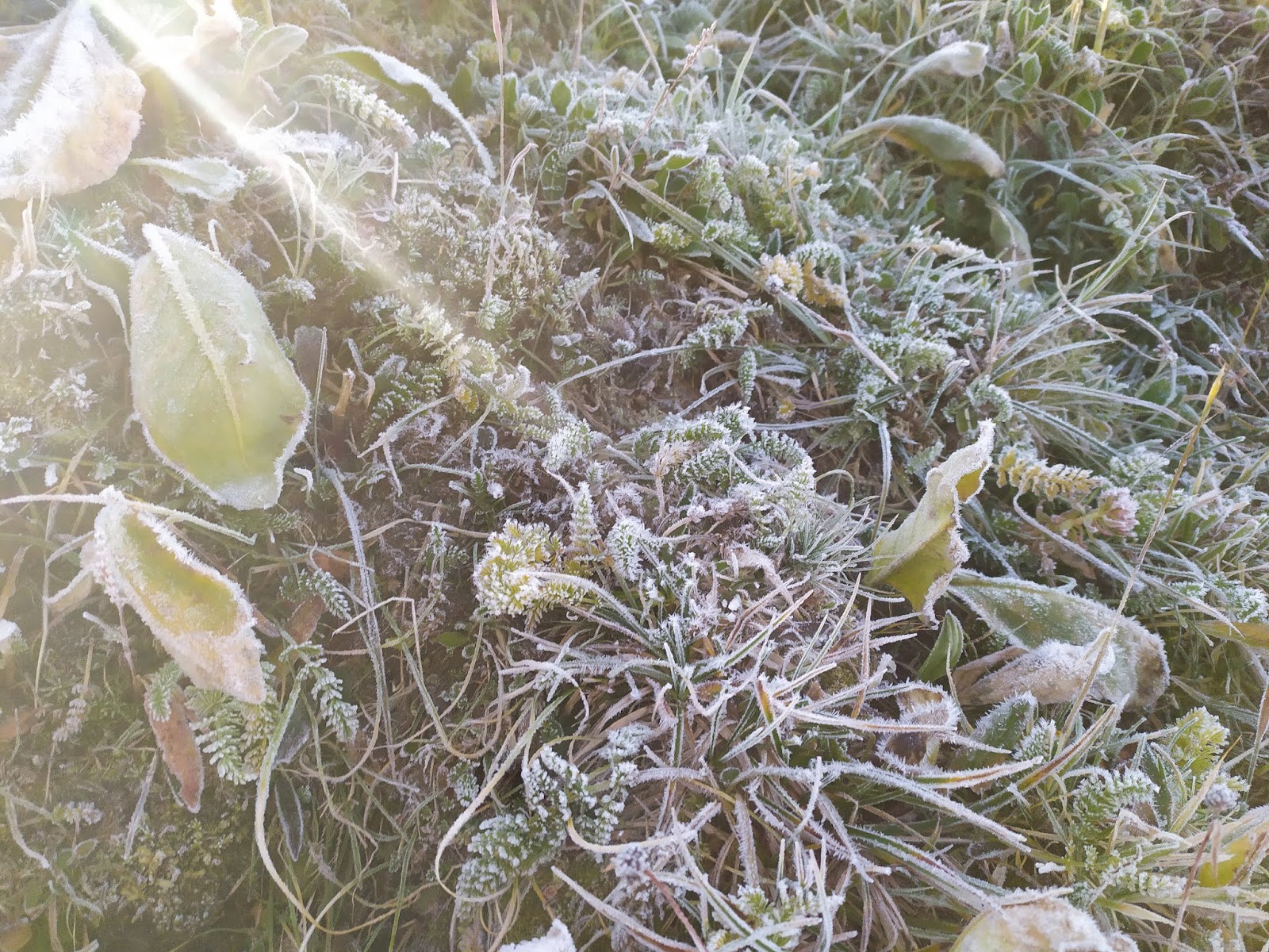 Сегодня было гораздо больше инея по сравнению со вчерашним днём, а вдоль берегов ручья радостно болтались намёрзшие за ночь красивые льдинки.