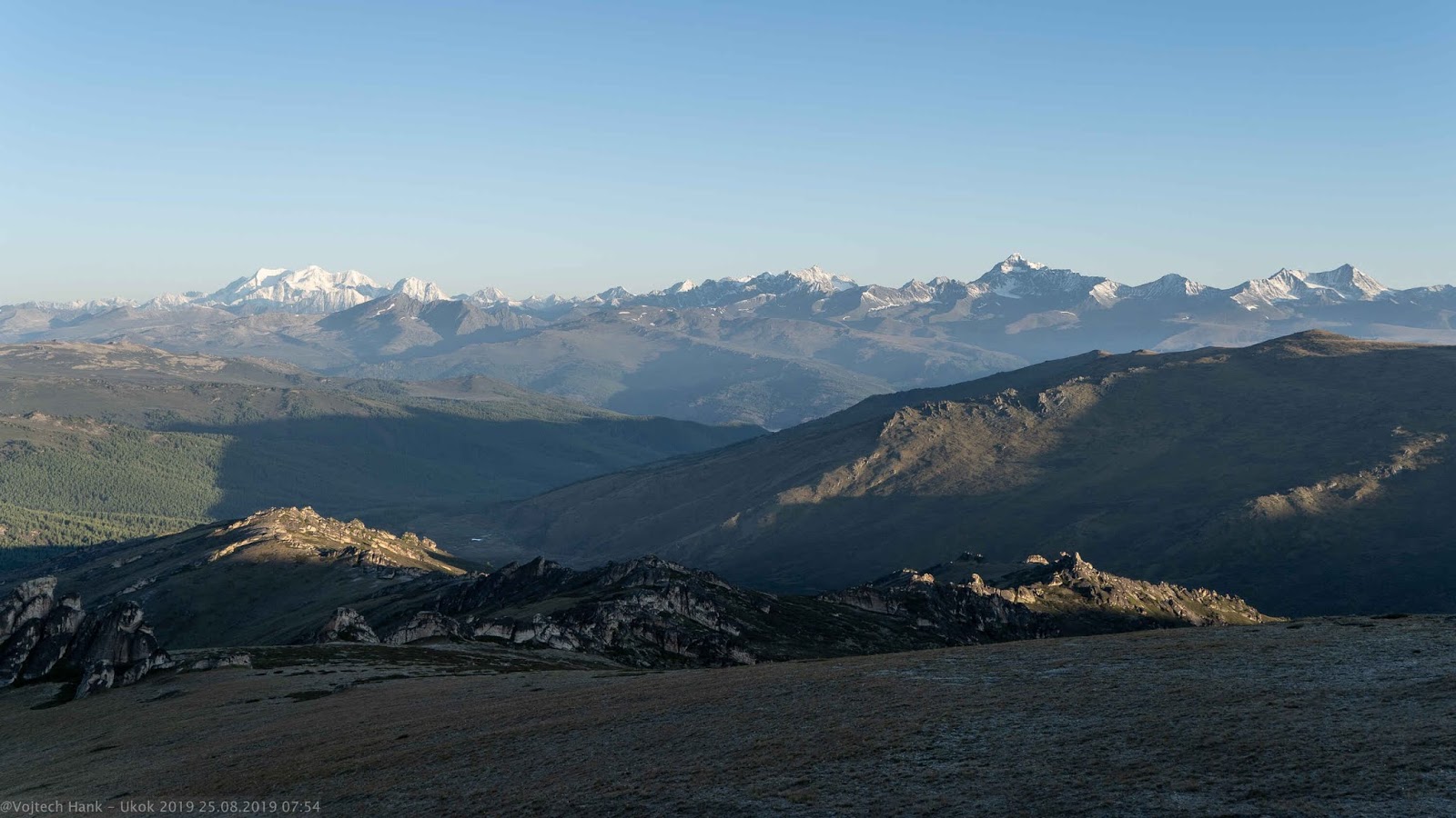 Сегодняшний день прямо с самого раннего утра порадовал нас ослепительно голубым небом без единого облачка. Народ, не тратя времени на отогревание и размораживание собственных мозгов, немедленно поскакал фотографировать горы и в особенности открывшуюся красавицу-Белуху.