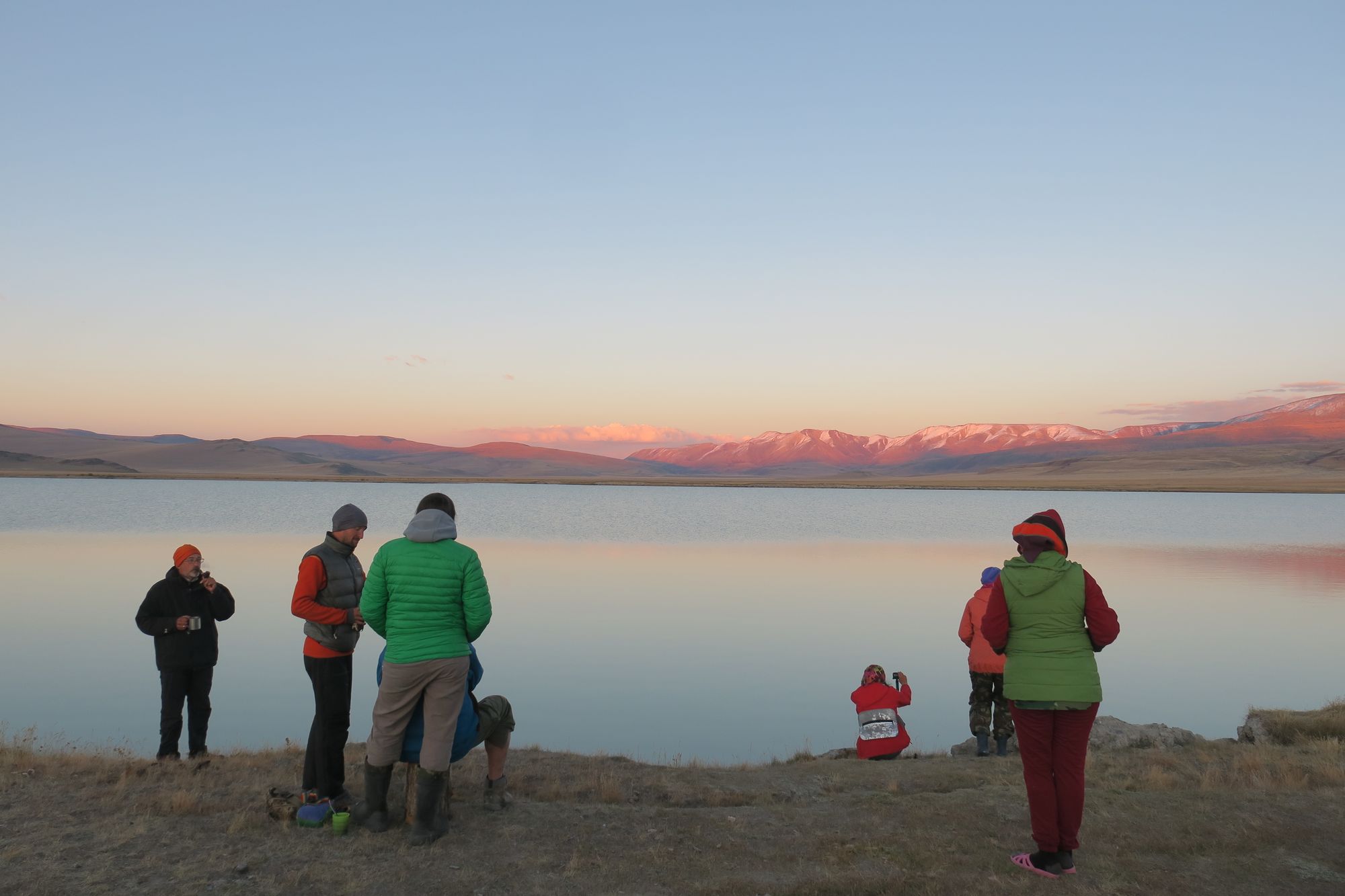 Прибыли на Гусиное, шустро разбили лагерь, и я, не раздумывая долго, отправилась в свой традиционный обход озера. Гусиное лежало передо мной огромным неподвижным зеркалом бирюзового с молочным цвета и отражало в себе величественные горные хребты и редкие пушистые облачка. Обходя знакомые места, я чувствовала себя дома.