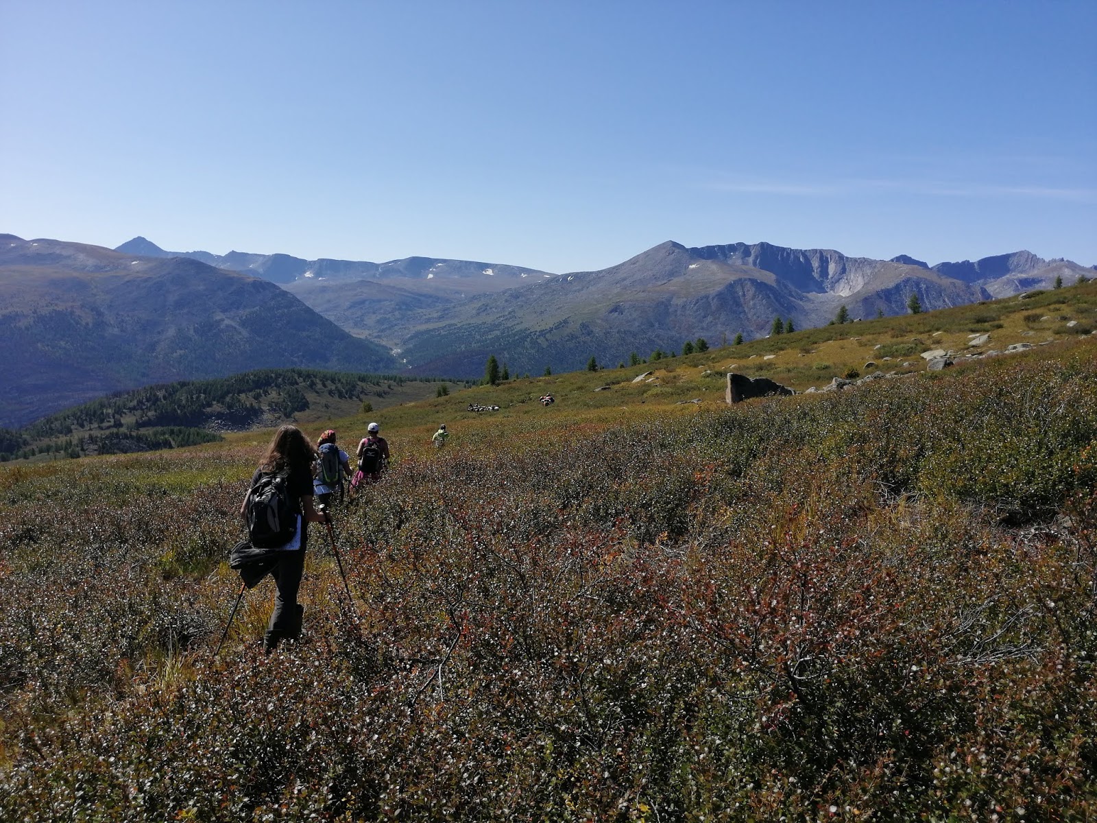 После обеда не было ни набора, ни сброса высоты, но шли мы по практически перманентному болоту. Продирались через карлушку.