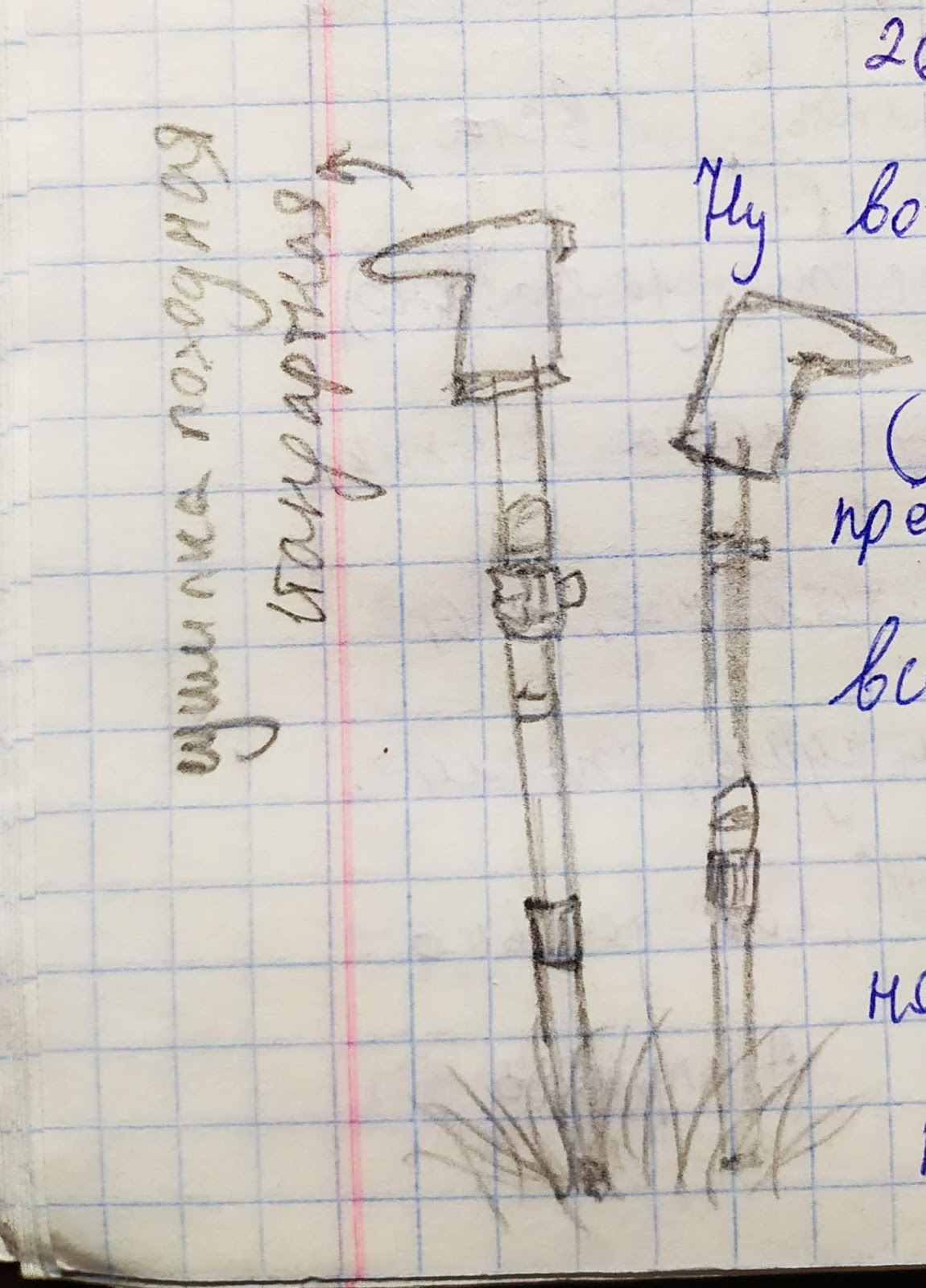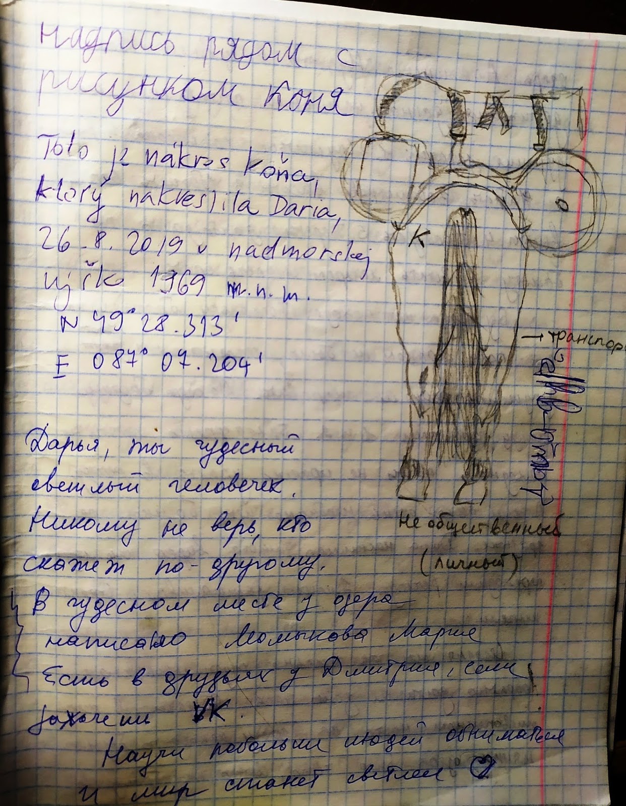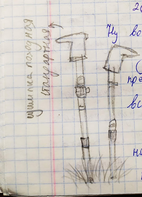 Я нарисовала сушилку походную и коня, вид сзади, а потом заставила нескольких человек расписаться у меня в дневнике: