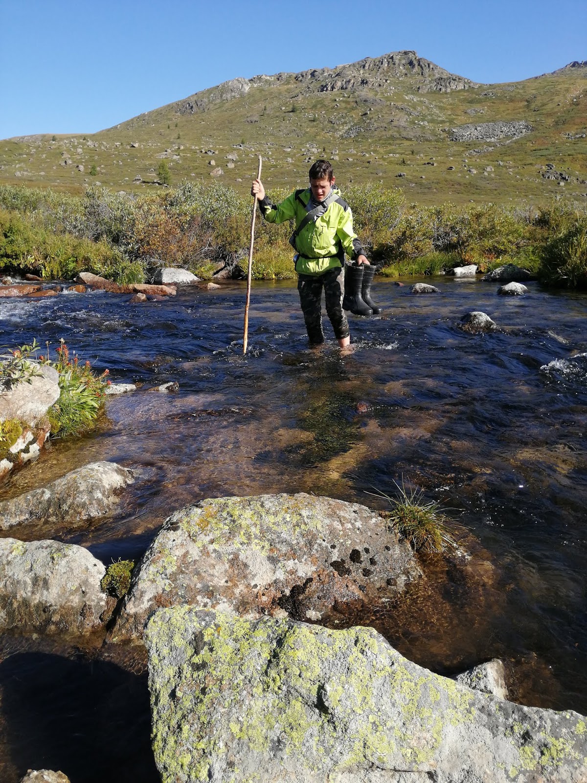 Без брода нет похода. Поскольку брода у нас ещё толком не было, сегодня мы это упущение решили исправить. До обеда бродили между пунктами плана “1” и “2”. Было терпимо: почти не холодно и почти не страшно упасть в речку. А ещё было очень непривычно идти босиком по грязюке. Дима наснимал много видео, как люди переходили речку. Эмоции зашкаливали. Страсти кипели.