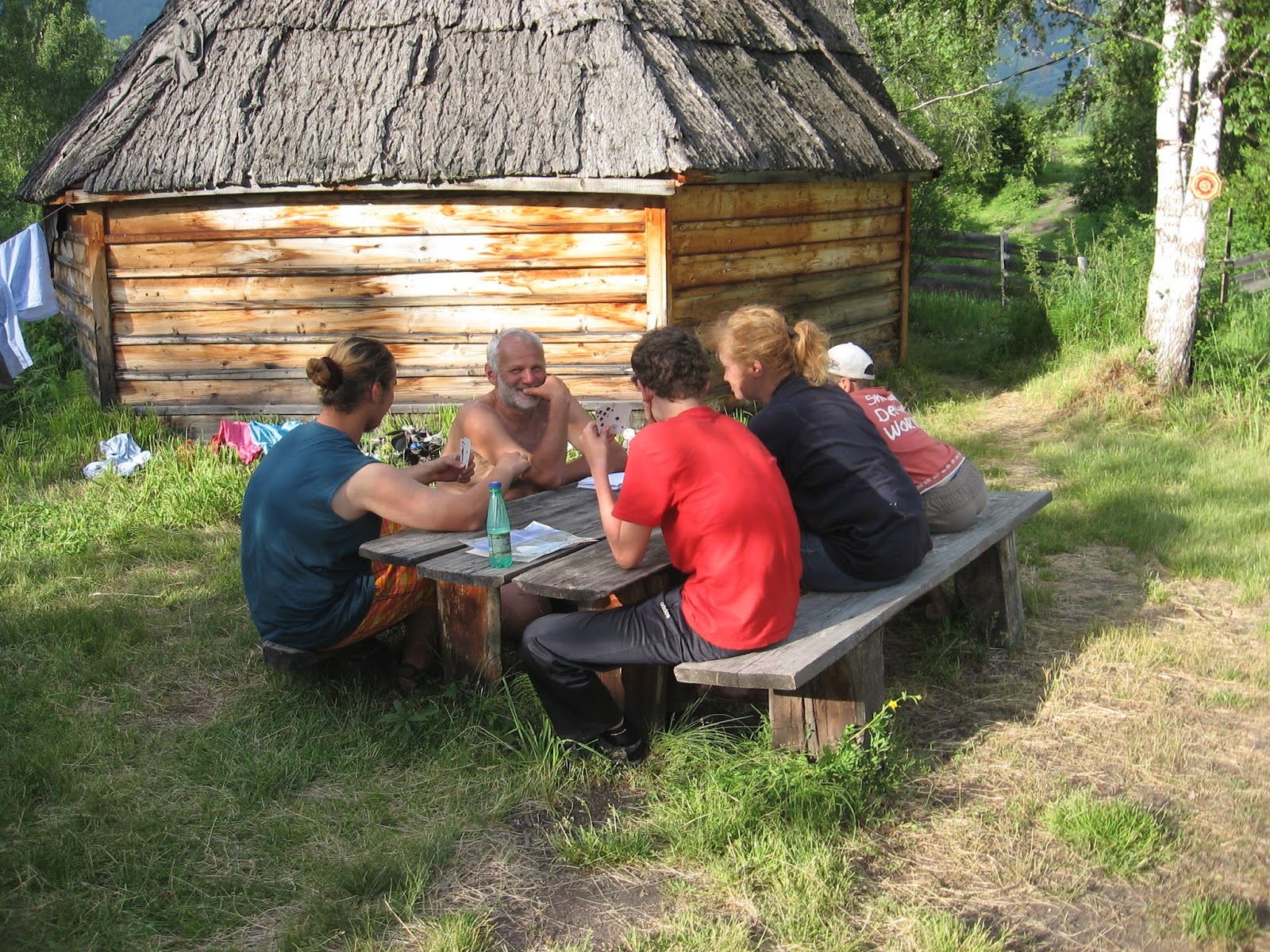 Яха тролил меня лично, а Ваня хлестал меня берёзовым веником, заготовленным для бани. Приехали в Тюнгур, на базу “Зелёный дом” с красной крышей. На этот раз нам дали другое место, и там был аил. Стояла жуткая жара, и Дима всё время бегал купаться в Катунь. А ещё он нудил, что мы не купаемся. Поставили палатки; Дима, Тёма и Ваня стали готовить хибачо – рис с овощами. А те, кто был не при делах (то есть я), валялись на пенках и ничего не делали. Потом мы поели и опять валялись. День сурка. Вещи сохли.