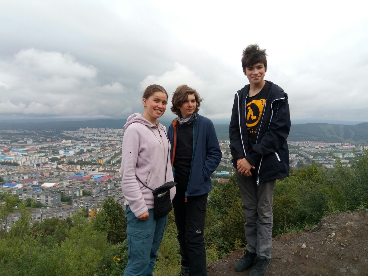 Дома обнимались, ели, болтали, шумно обменивались впечатлениями, вытаскивали мокрые полузакисшие вещи на просушку. Вскоре приехал д. Володя, и мы поехали кататься. Побывали на Мишенной сопке и посмотрели на город сверху.