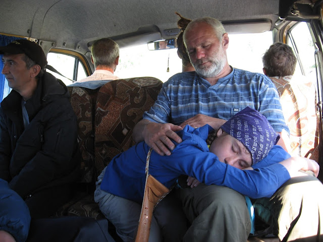 Сегодня нас подняли в 6, но мы почему-то не был сонными мухами. Мы встали и начали судорожно собирать вещи и палатки. Выпала обильная роса, и палатки были жутко сырыми. Не закончив сборы, помчались завтракать. На завтрак были рожки с сыром – самое популярное блюдо: за 9 дней его готовили 3 раза. Кое-как дособирались, погрузились в газель и поехали. На этот раз я сидела на том же месте, что и в прошлый раз, а т. Маша с Яхой сидели на других. В результате Яха мог спать на т. Маше, а я нет. Но зато я могла спать на Диме, что было даже удобнее, потому что Дима большой и уютный.